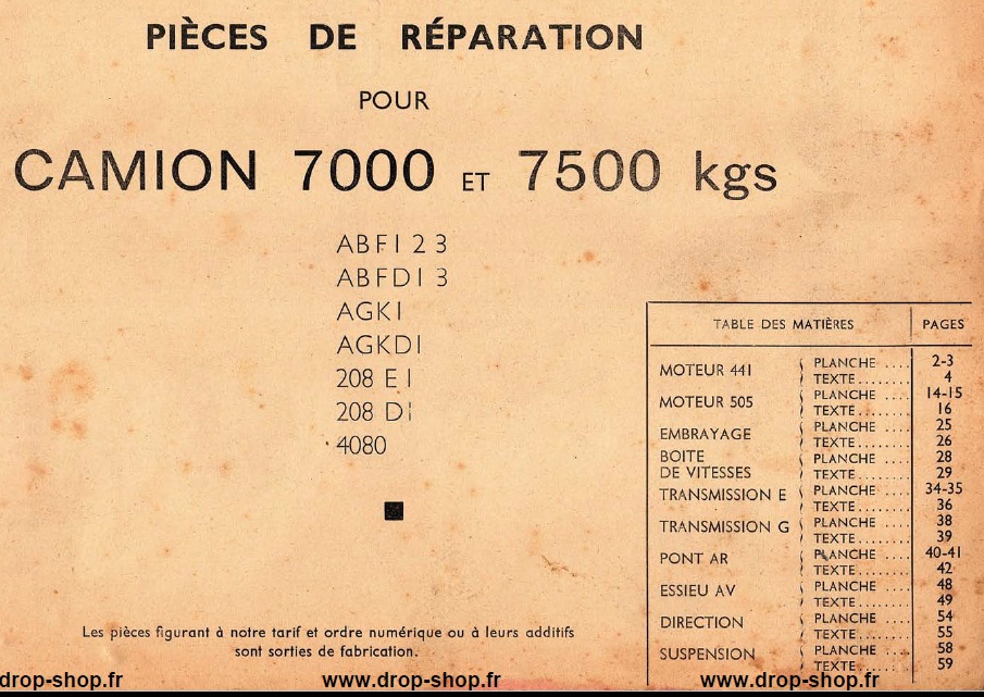 Renault Camion 7000 et 7500 kg – Liste de Pièces détachées « La Moriniére »