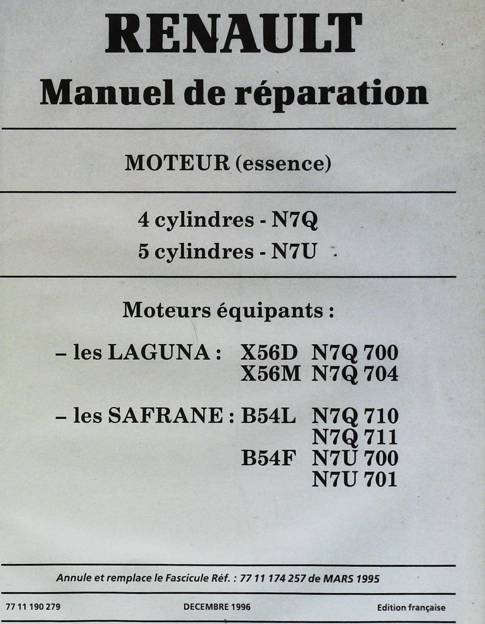 Manuel de Réparation Moteur Renault Essence N7Q et N7U monté sur Laguna et Safrane